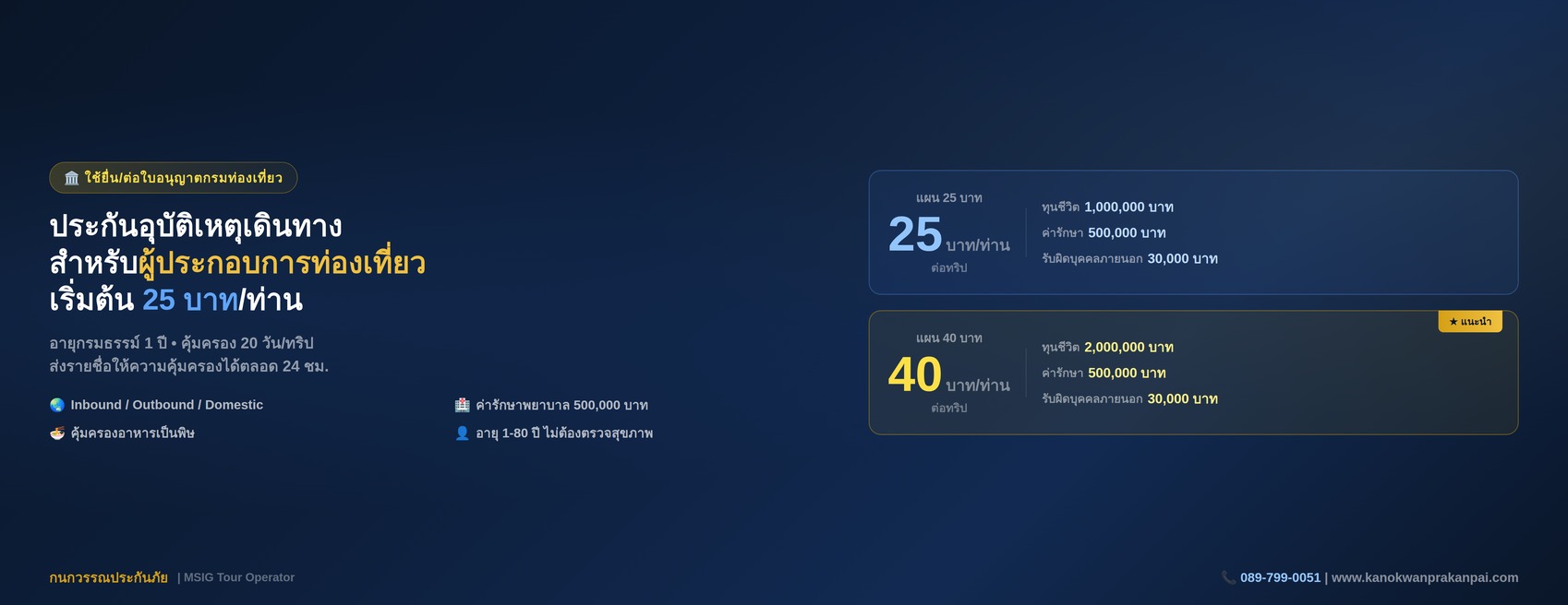 สวัสดีคะ เราเป็นนายหน้า ประกันวินาศภัย อย่างถูกต้อง ตามกฏหมาย เป็นสมาชิก TTAA no. E228 บริการของเราเน้นเรื่องการให้บริการที่สามารถติดต่อง่าย มีช่องทางให้ติดต่อเราได้หลากหลายช่องทาง ไม่ว่าจะเป็น ลาย เฟสบุค อีเมล์ เว็บไซต์ หรือ โทรศัพท์ เว็บไซต์ของเราให้บริการด้านข้อมูล ความรู้ที่เกี่ยวข้องกับประกันวินาศภัย รวมถึงการออกกรมธรรม์ออนไลน์ ของประกันเดินทาง ท่านสามารถส่งข้อมูลที่ต้องการสอบถาม ผ่านระบบของเราดังที่ได้กล่าวมาแล้ว หวังว่าบริการต่างๆที่เรามี จะตอบโจทย์ความต้องการของทุกท่านได้อย่างรวดเร็วและสะดวกสบายนะคะ ขอบคุณคะ