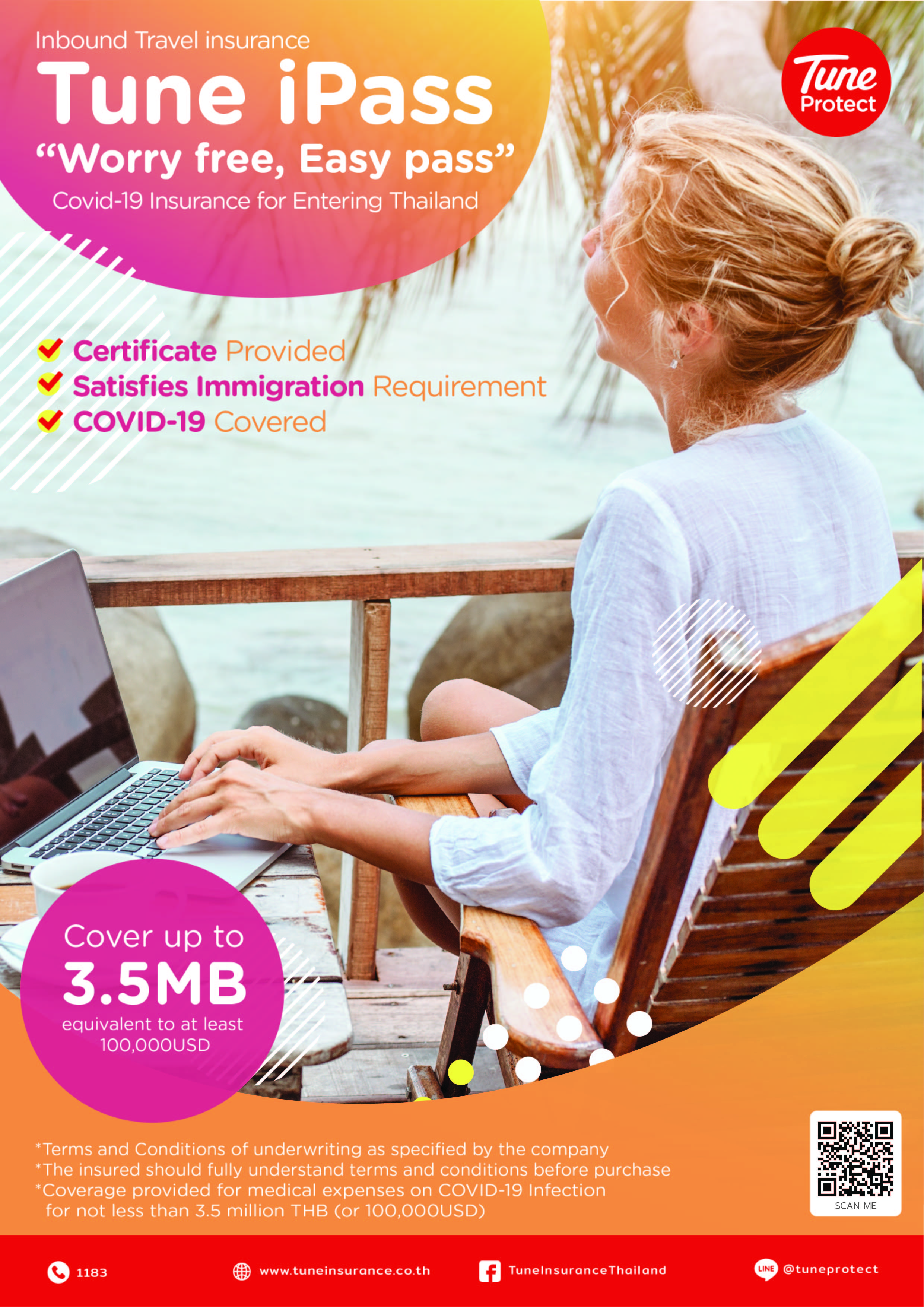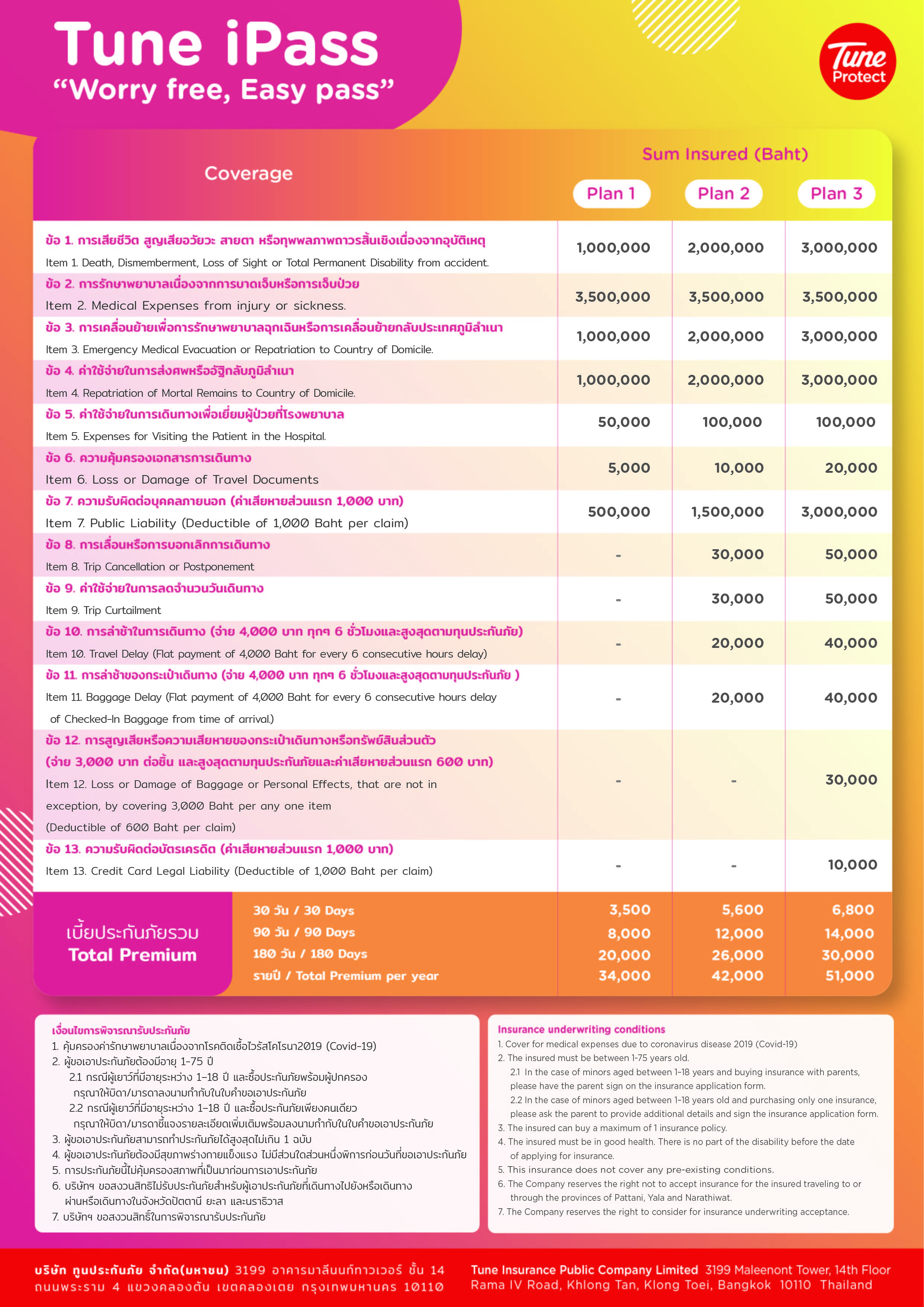 Inbound Travel Insurance Tune iPass cover covid-19 for entering Thailand