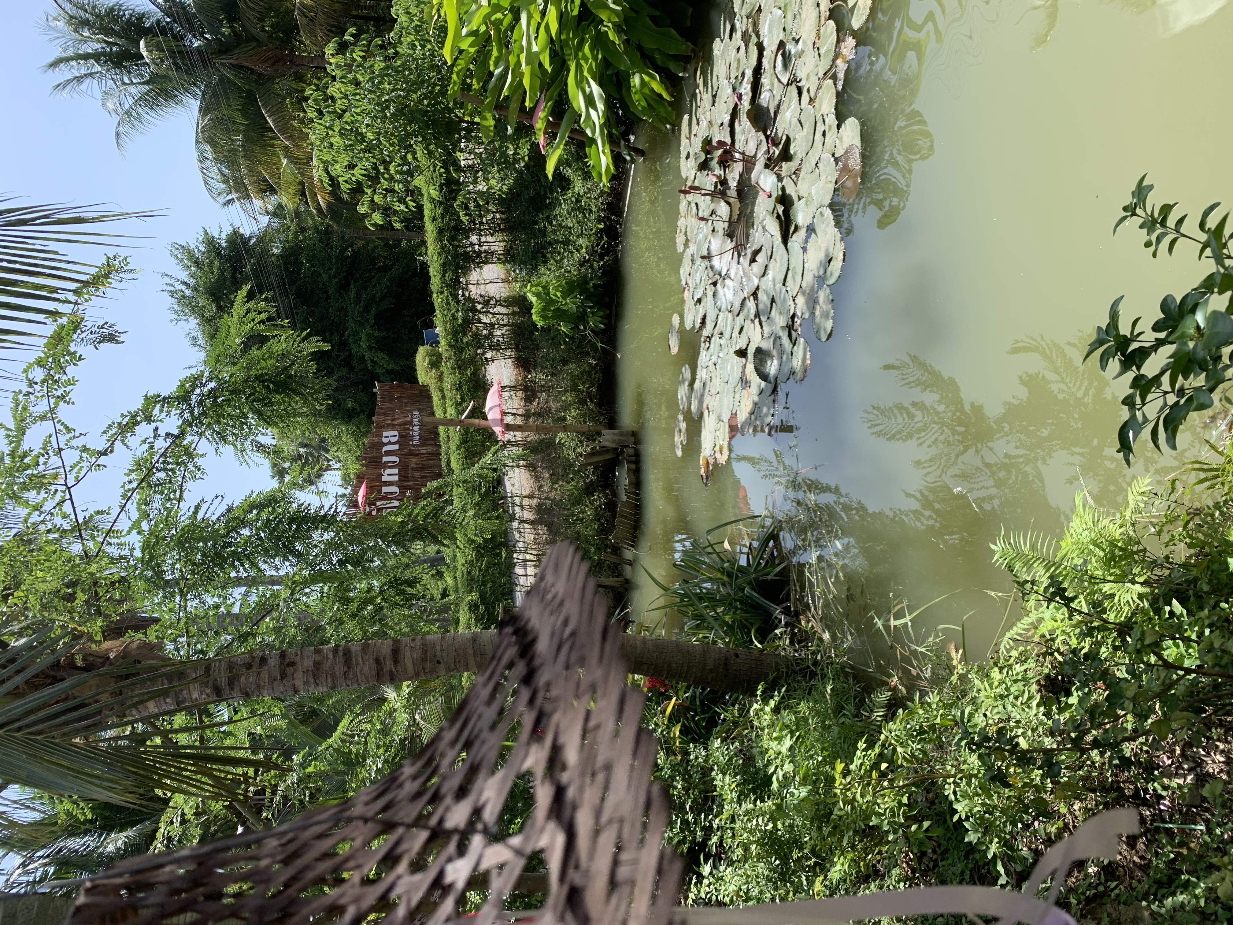 มีที่จอดรถกว้างขวาง มีบ่อปลา เย็นสบาย |