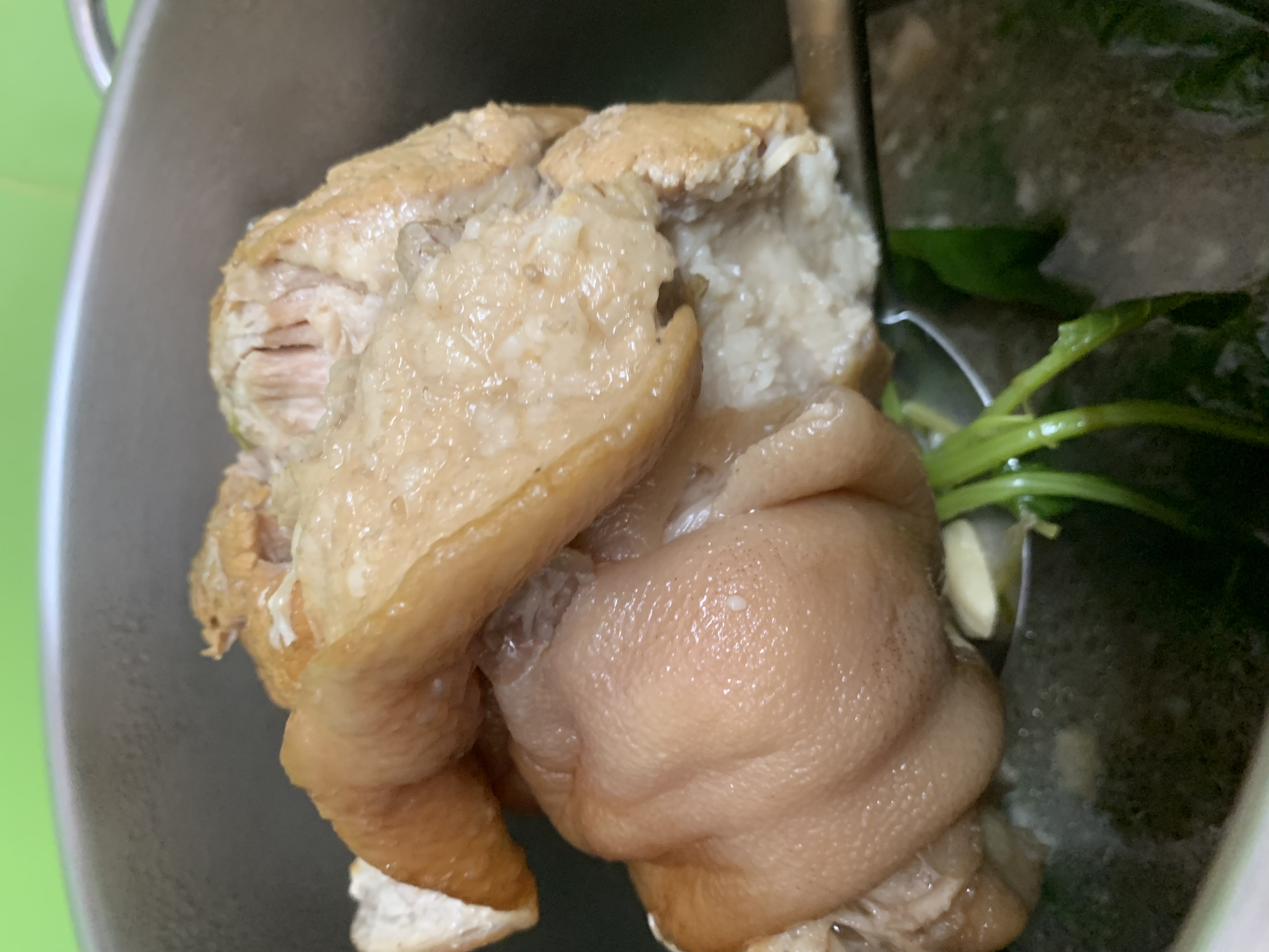 ตุ๋นไปประมาณ 3 ชม เอาหนังมาชิมก่อน ใช่เลย เหนียวหนึบหนับ ที่บ้านชอบแบบนี้ เลยตักหนังหมูออกมาก่อน ที่เหลือตุ๋นต่ออีก 1 ชม ใช้ไฟแรงช่วงต้นๆ สัก 45 นาที ที่เหลือไฟกลาง ไปทางอ่อน ชิมรสที่เราชอบ ของเราจะชอบรสกลมกล่อม จะไม่ออกหวานหรือเค็ม เพราะจะซดเป็นน้ำซุป |