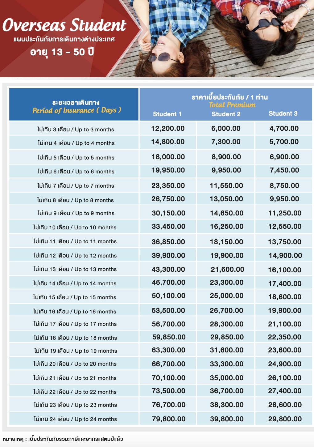 เบี้ยประกัน แผนนักเรียนต่างประเทศมีให้เลือก 3 แผนครับ