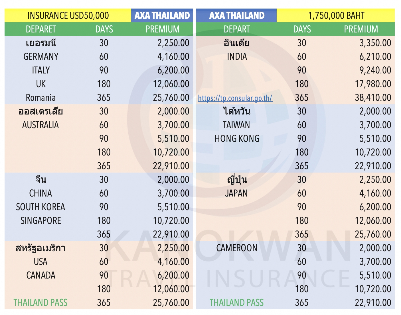 Contact us for insurance entering Thailand minimum USD50,000 and USD100,000 Tel whatsapp 0897990051 Line OA: @kanokwanprakanpai Email: kanokwanprakanpai@gmail.com |