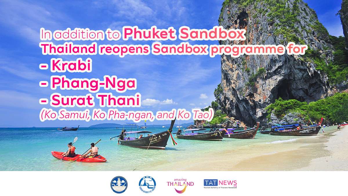 Bangkok, 07 January, 2022 – Thailand’s Centre for COVID-19 Situation Administration (CCSA) today approved a new round of relaxed entry measures for international arrivals to Thailand, reopening 3 more Sandbox destinations – Krabi, Phang-Nga, and Surat Thani (only Ko Samui, Ko Pha-ngan, and Ko Tao) from 11 January, 2022 – in addition to Phuket. Sandbox entry programme available at 4 destinations From 11 January, 2022, international travellers will be able to travel to Thailand under the Sandbox programme, and can choose to undergo their mandatory 7-day stay in either Krabi, Phang-Na, Phuket, or Surat Thani (only Ko Samui, Ko Pha-ngan, and Ko Tao). However, all travellers must make sure that they arrange everything in order before applying for the Sandbox Thailand Pass. This can include, but not limited to, a vaccination certificate, a pre-arrival negative RT-PCR test result, prepaid 7-night’s accommodation in an approved hotel, prepaid RT-PCR tests for when in Thailand, and an insurance policy with coverage no less than US$50,000. Travellers must stay at least the first 7 nights within a Sandbox destination if planning to continue the journey to other destinations in Thailand. If staying less than 7 nights, the traveller must leave Thailand to another country immediately.