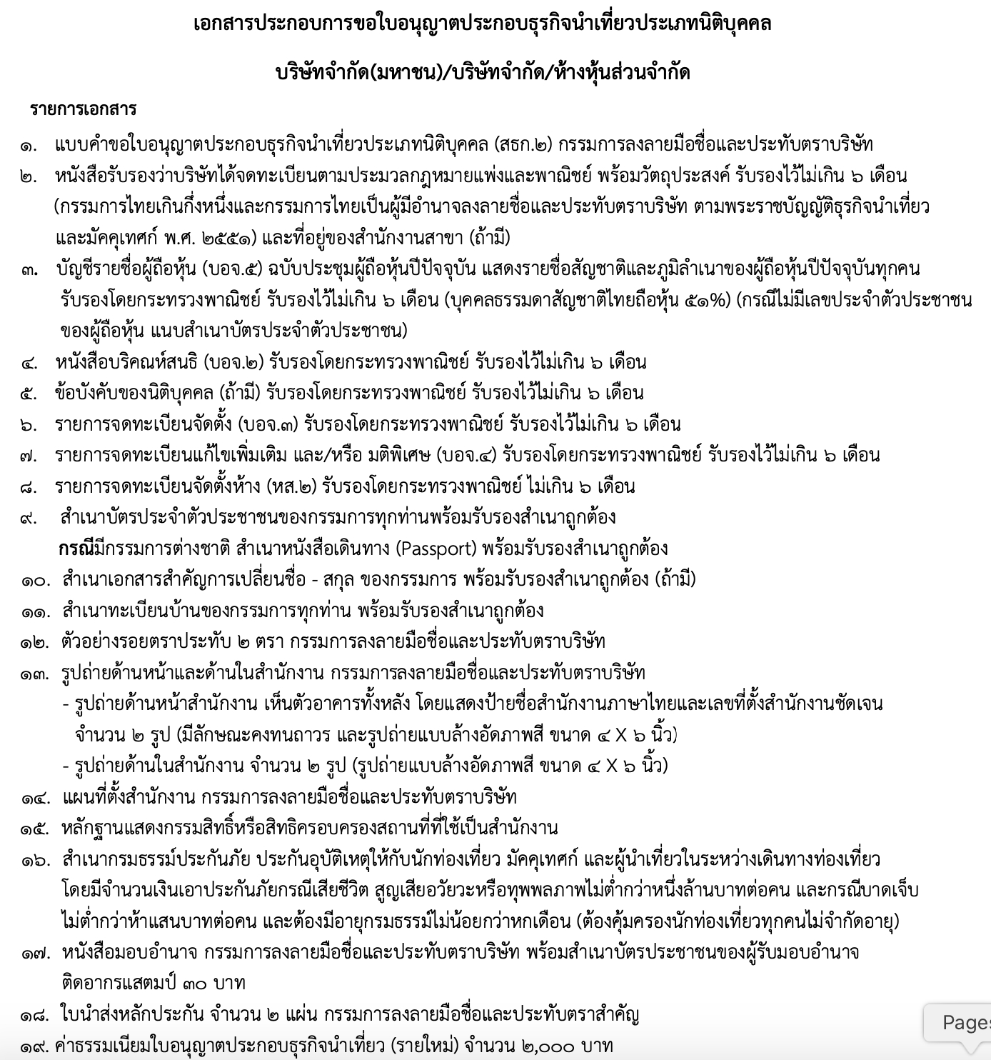 เอกสารประกอบการขอใบอนุญาตประกอบธุรกิจนาเที่ยวประเภทนิติบุคคล