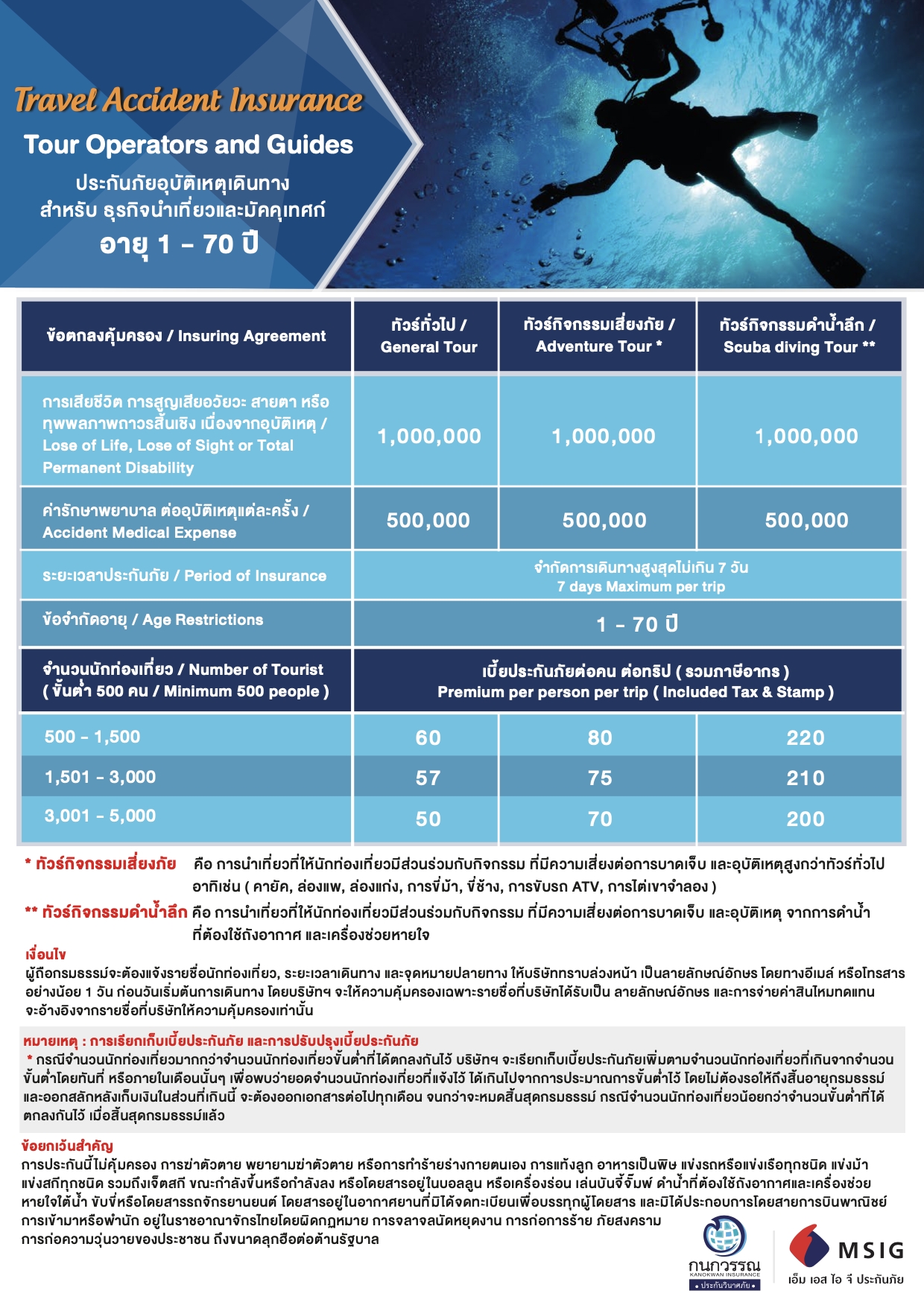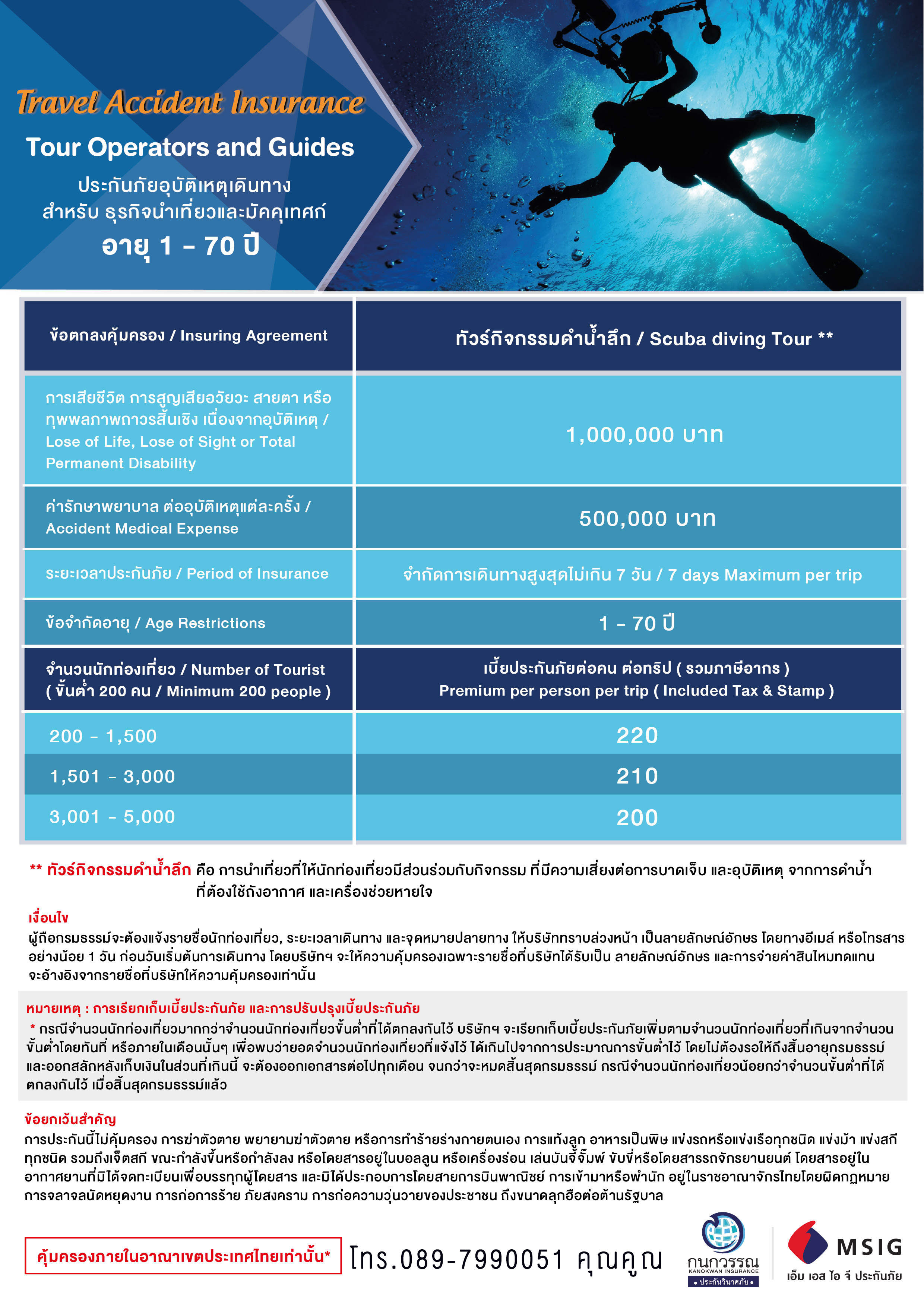 ซื้อขั้นต่ำ 200 ท่าน สำหรับผู้ประกอบการดำน้ำลึก สามารถนำกรมธรรม์ไปต่อไบอนุญาตท่องเที่ยวได้ครับ |