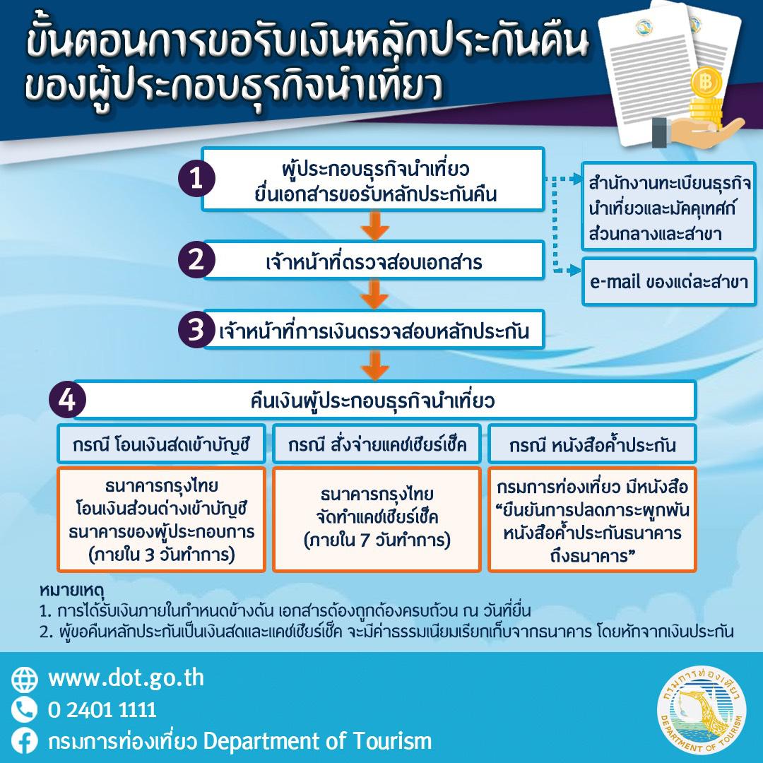 การยื่นคำขอคืนหลักประกันของผู้ประกอบธุรกิจนำเที่ยว ตามมาตรการเยียวยาผลกระทบ COVID-19 ขั้นตอนการขอรับหลักประกันคืน ของผู้ประกอบธุรกิจนำเที่ยว